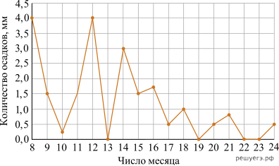 На рисунке жирными точками показано суточное количество осадков, выпадавших в Томске с 8 по 24 января 2005 года. По горизонтали указываются числа месяца, по вертикали — количество осадков, выпавших в соответствующий день, в миллиметрах. Для наглядности жирные точки на рисунке соединены линией. Определите по рисунку наибольшее суточное количество осадков, выпадавшее в Томске в период с 13 по 20 января. Ответ дайте в миллиметрах.