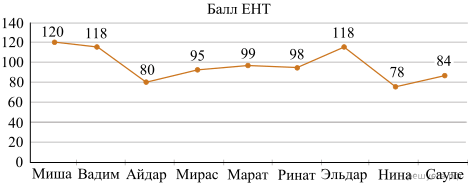На графике представлен балл ЕНТ учащихся некоторой школы. Найдите размах полученных баллов на ЕНТ.